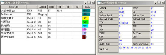 在GSM網(wǎng)絡(luò)測試過程中,系統(tǒng)可實(shí)時監(jiān)測RR層Idle及Dedicated狀態(tài)下的無線參數(shù)數(shù)據(jù),以及GSM無線網(wǎng)絡(luò) |