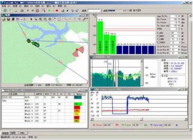 在GSM網絡測試過程中,系統可通過測試手機進行掃頻測試,并可實現同頻載干比測試和鄰頻干擾源的查找 |